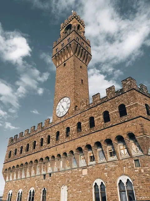 The town hall of Florence, Palazzo Vecchio, is a striking medieval building that represents the political and cultural history of the city. It housed the powerful Medici family and witnessed the rise of the Renaissance.