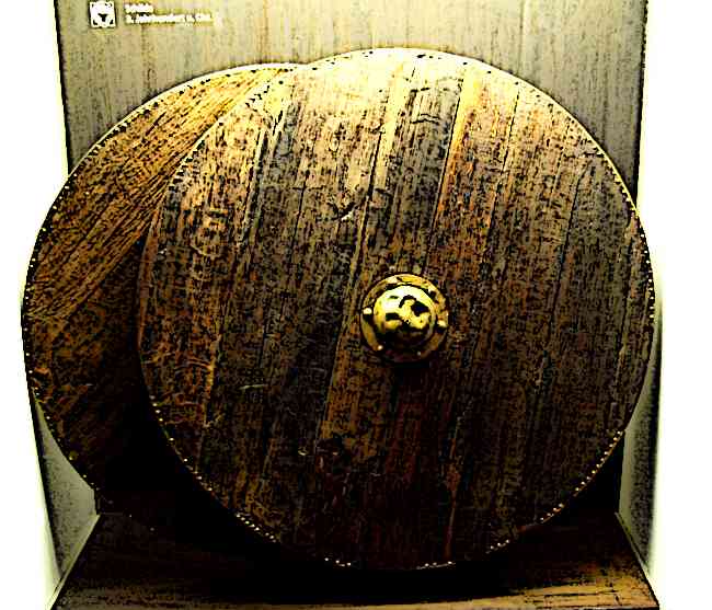 Most round shields had a rim around the perimeter, reinforcing their basic wood structure. Leather was also frequently used over the wood to make the shields more durable and less prone to damage.