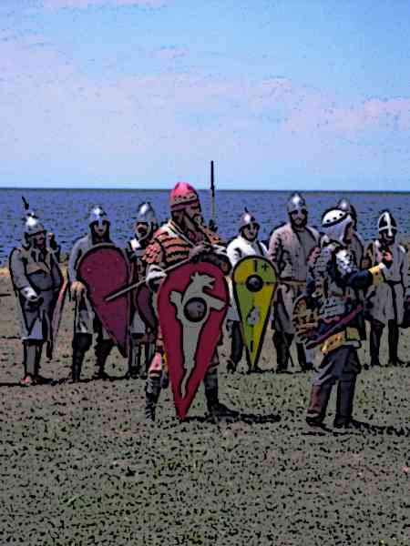 Normans painted their round shields with different bright colours, often depicting the mythical Norse beasts on the shields.