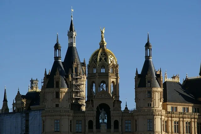 Schwerin Palace is located in the city of Schwerin. It is removed from the main city by being located on a small island in the middle of a lake. The original construction at the site was a Slav fort in the 10th century.