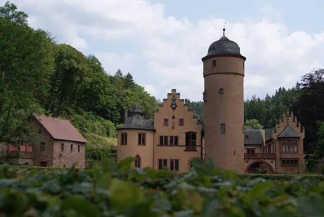 The Mespelbrunn castle is located in the town of Mespelbrunn. The castle was originally built as a private house by a 15th-century knight. The most remarkable feature of this castle is that it is built on water, specifically on a lake.