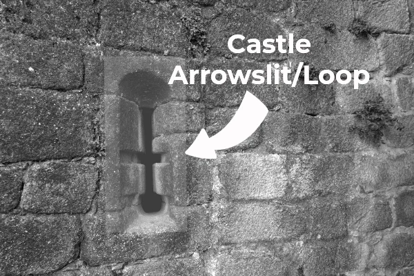 Arrowslits or Loops were an inevitable part of medieval castle battlements and thus its defence. A medieval castle arrow-loop was a narrow opening in the medieval castle walls and towers and was used to launch arrows at the invading enemy.