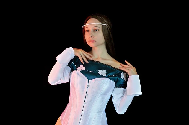 To highlight womanly curves, tight lacing was girdled at the hip section, creating an illusion of having a long waist. Women occasionally wore long, pointy as well as high double horn headdresses.