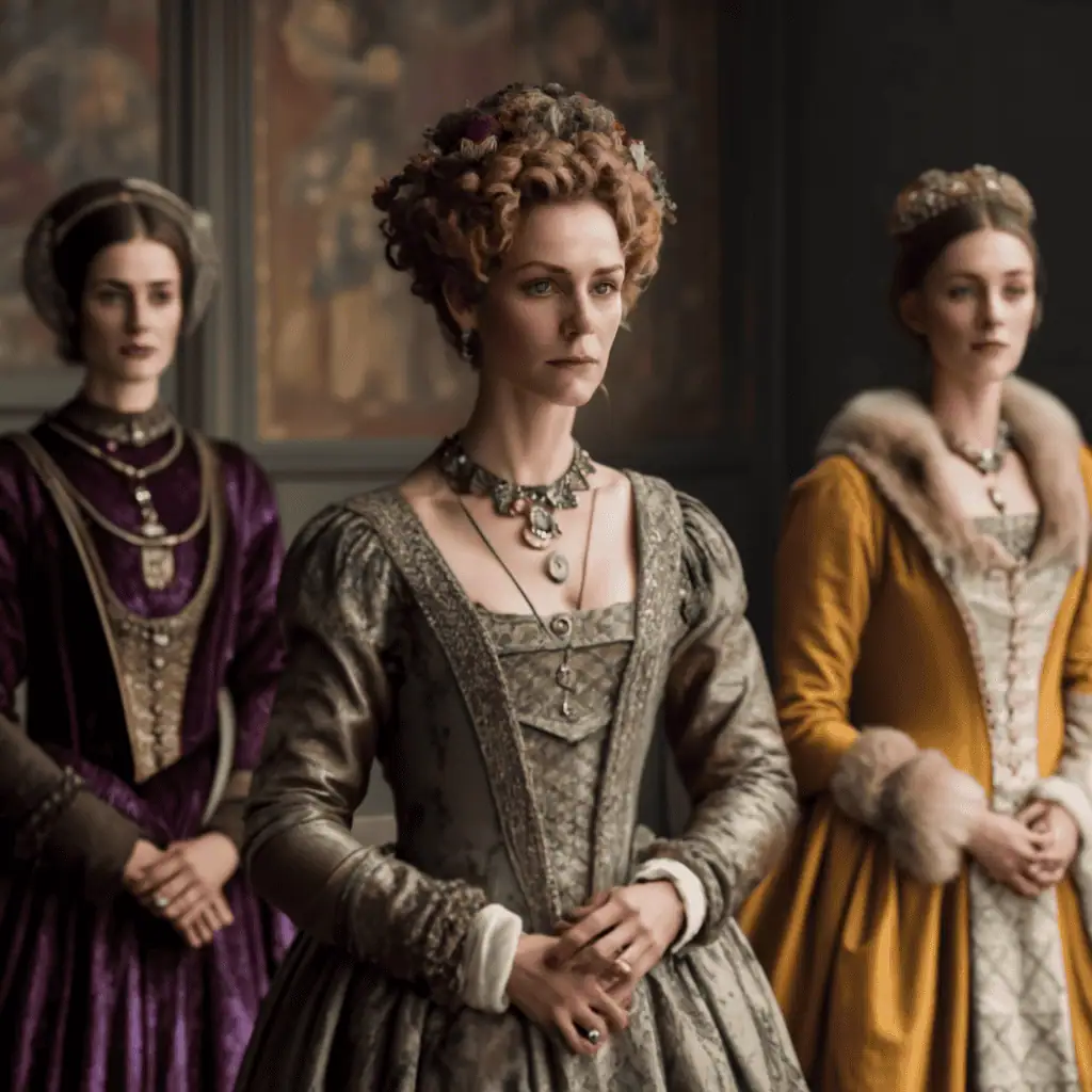Gowns were worn by women and had a fitted bodice and full skirt. They were often made of luxurious fabrics and embellished with embroidery or trim.