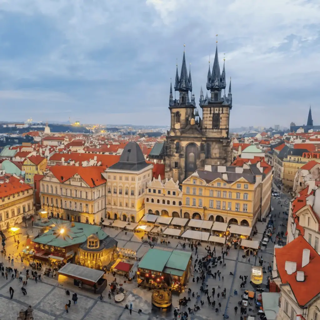 Perched on a hill, Prague Castle provides panoramic views of the city, offering a glimpse into the medieval landscape. As the city below sparkles with holiday lights, the castle itself, adorned with festive decorations, becomes a medieval stronghold of yuletide joy.