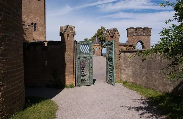 The castle’s main entrance is the Gates Tower, which leads to the inner courtyard. The towers, turrets, and battlements provide the castle with a distinctive appearance.