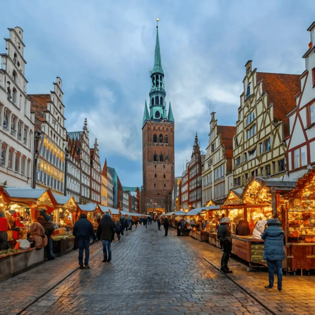 Lübeck, a medieval Hanseatic city, is home to one of Germany’s oldest Christmas markets. The market, set against the backdrop of historic buildings, provides a magical experience with its festive lights and seasonal treats.