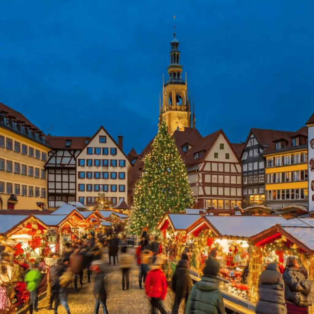 Tübingen’s Christmas Market takes place in the medieval marketplace and features over 450 stalls. The medieval old town, with its narrow streets and picturesque setting along the Neckar River, provides a festive backdrop.