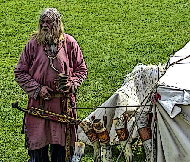 So while common freemen usually wielded a spear, a Viking nobleman had a more elaborate list including a sword, helmet, and mail shirt.